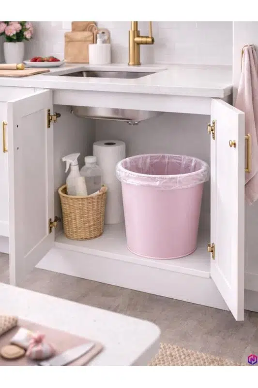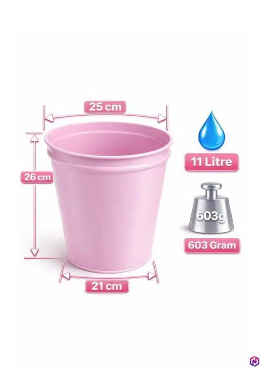 NEED ND-1050 Metal Toz Pembe Çöp Kovası, konik tasarımı ve modern rengi ile hem fonksiyonel hem de dekoratif bir kullanım sunar.