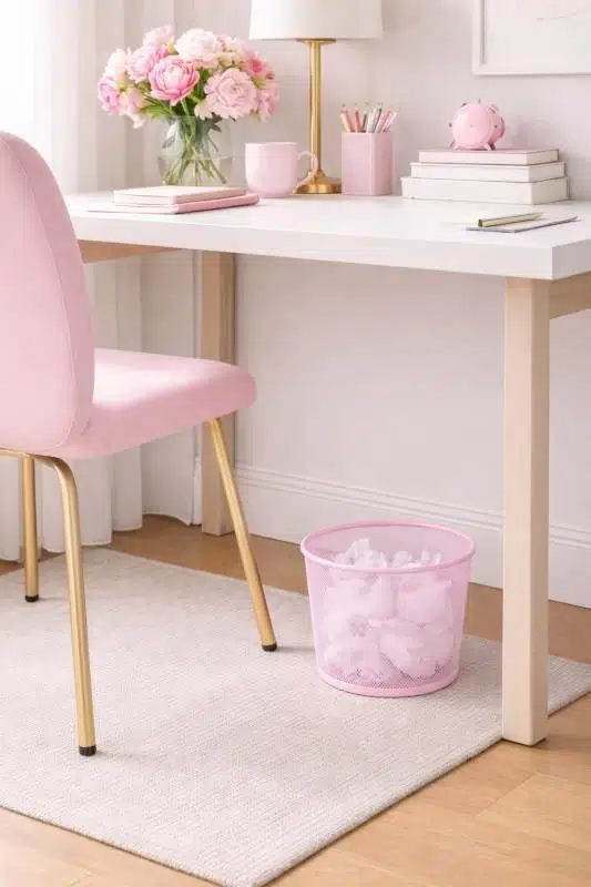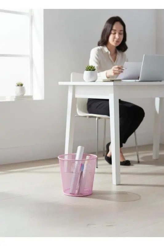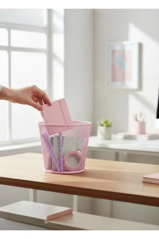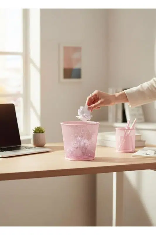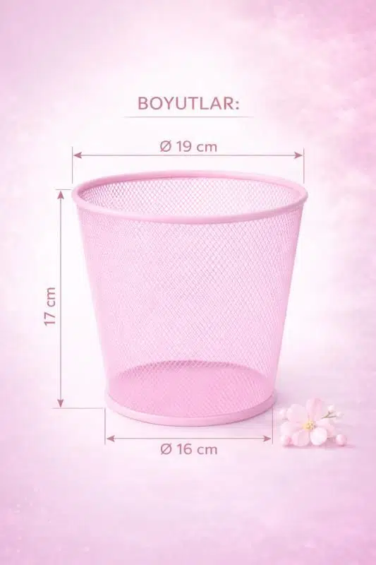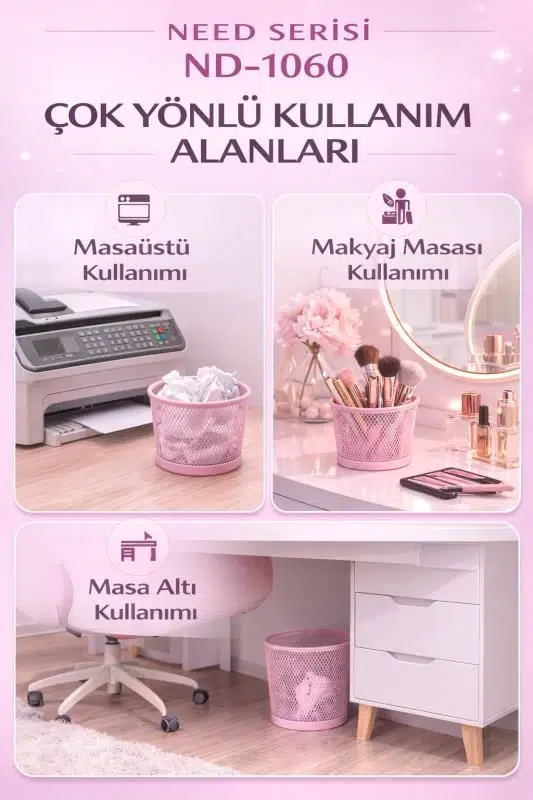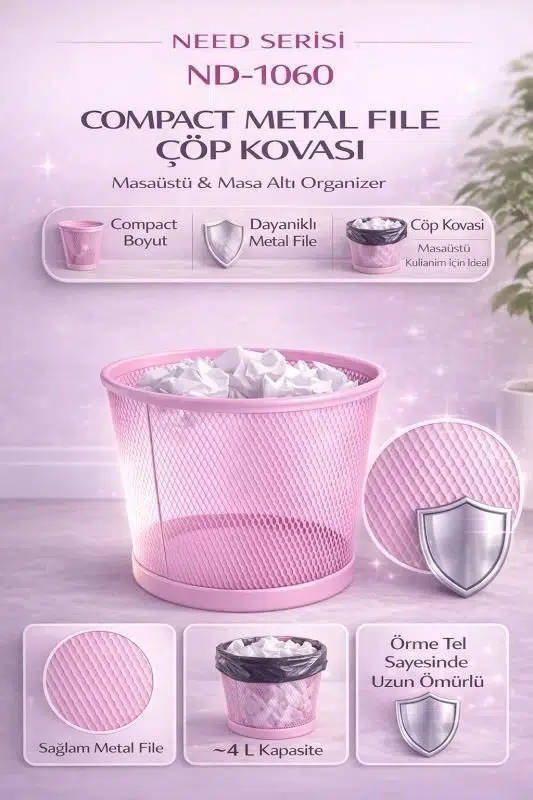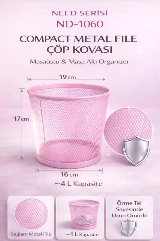 ND-1060 Masaüstü & Masa Altı Metal File Çöp Kovası – Geniş Organizer (Toz Pembe)