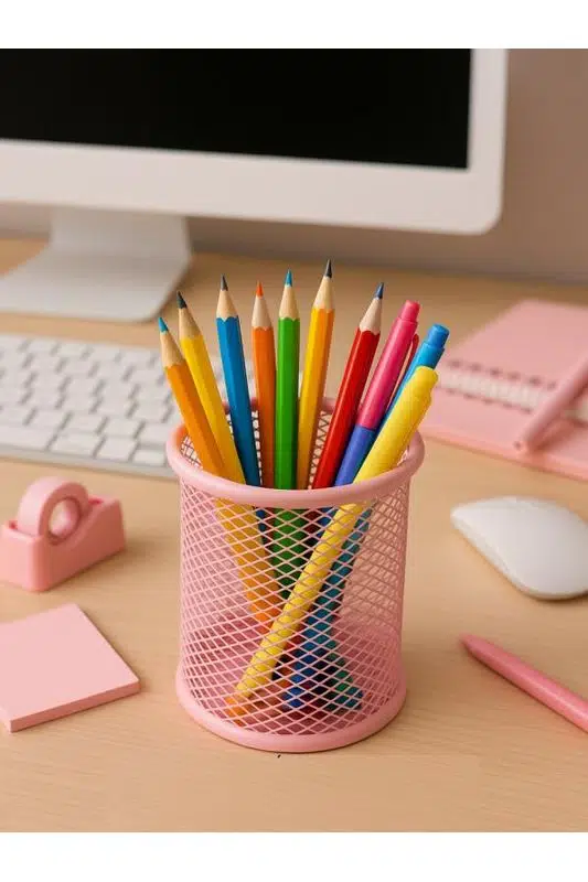 Düzenli Çalışma Alanı: Kalemlerinizi ve küçük kırtasiye malzemelerinizi bir arada tutarak masa karışıklığını önler.