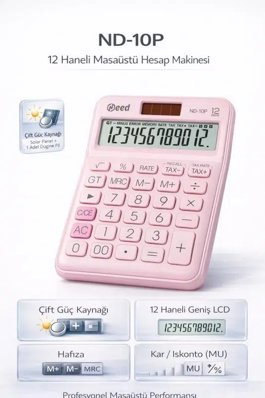 Hem estetik hem de fonksiyonel yapısıyla Need ND-10P, hesap makinesi ihtiyacınız için mükemmel bir tercihtir. Şimdi sipariş verin, hesaplamalarınızda fark yaratın!
