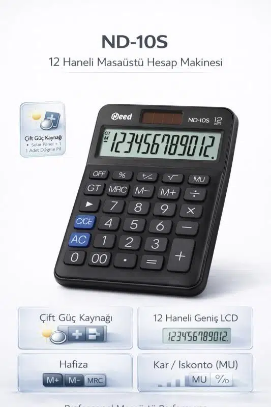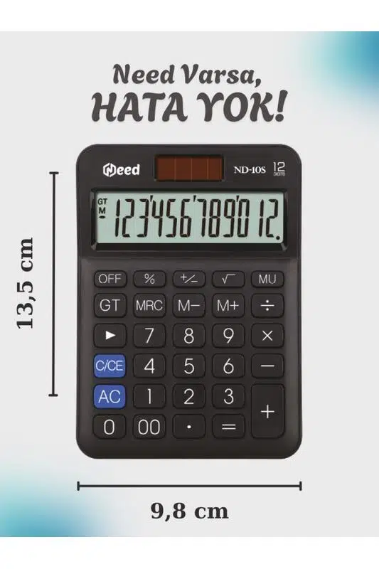 Hem estetik hem de fonksiyonel yapısıyla Need ND-10S, hesap makinesi ihtiyacınız için mükemmel bir tercihtir. Şimdi sipariş verin, hesaplamalarınızda fark yaratın!