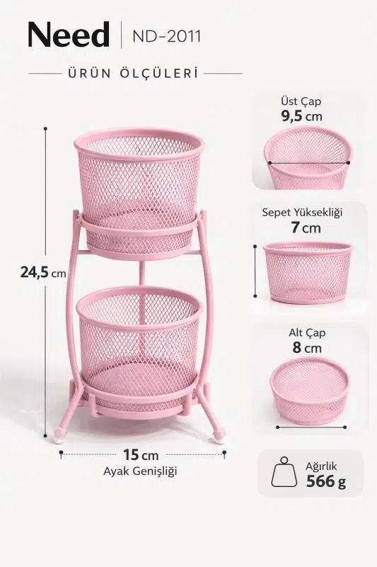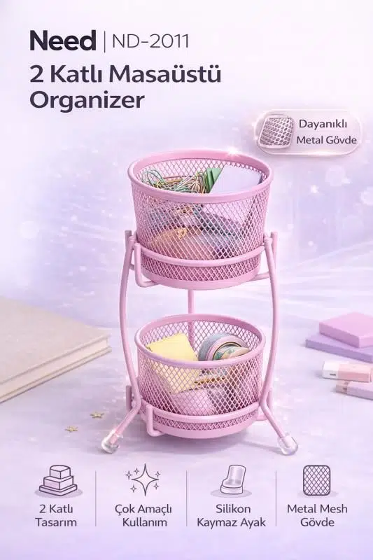 Need ND-2011 Çok Amaçlı İki Katlı Masaüstü Organizer, çalışma masanızda düzen ve estetiği bir araya getirmek için tasarlanmış modern bir masa düzenleyicidir. Dayanıklı metal mesh gövdesi sayesinde uzun ömürlü kullanım sunarken, iki katlı tasarımı ile küçük eşyalarınızı pratik bir şekilde organize etmenizi sağlar.