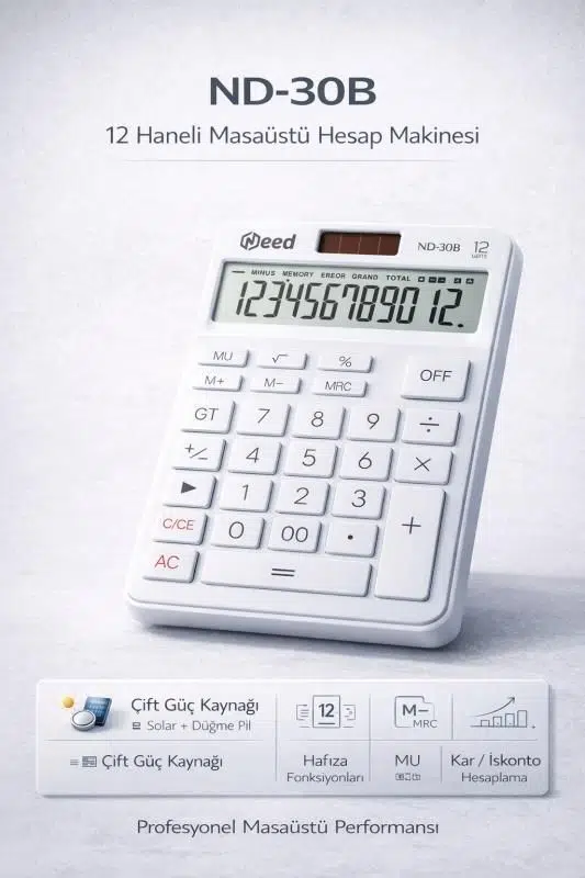Hem estetik hem de işlevselliği bir arada sunan Nd-30P Beyaz Hesap Makinesi, günlük hesaplama ihtiyaçlarınız için ideal bir yardımcıdır. Modern tasarımı, kullanıcı dostu özellikleri ve Beyaz rengiyle çalışma ortamınıza canlılık katarken, gelişmiş teknik özellikleriyle de beklentilerinizin ötesine geçer.