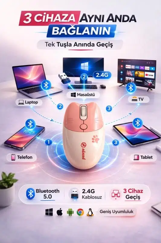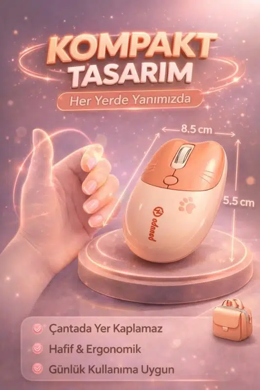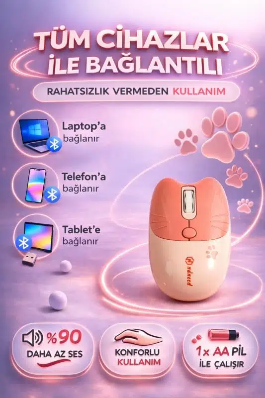 Sevimli Kedi Kablosuz Pudra-Bej Mouse Bluetooth + 2.4G Dual Mode