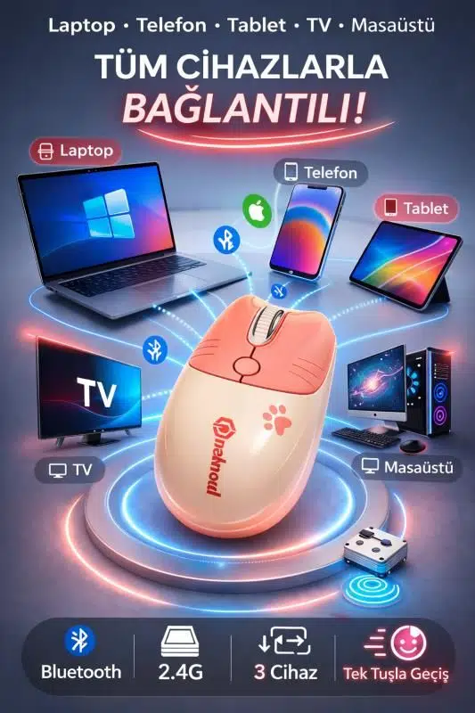 Çift Mod: Bu kablosuz fare, BT 5.1 veya 2.4GHz kablosuz bağlantıyı destekler ve 2 cihaza bağlanabilir, sadece tek bir tıklamayla iki cihaz arasında geçiş yapın.