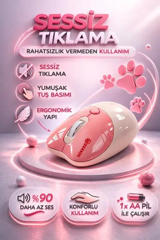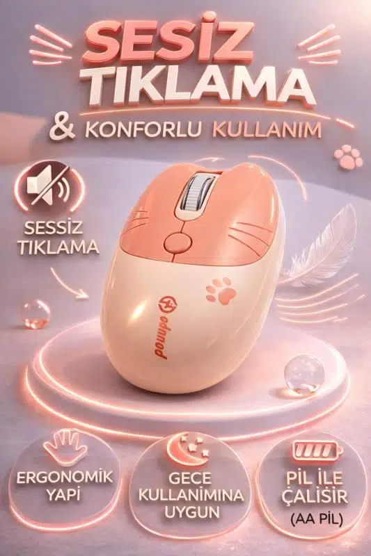 Sessiz Tasarım: Bu ofis faresi, sessiz tasarıma ve kaymaz kaydırma tekerleğine sahiptir ve uzun süreli yorucu işlerde başkalarını rahatsız etmeden işinize konsantre olmanızı sağlar.