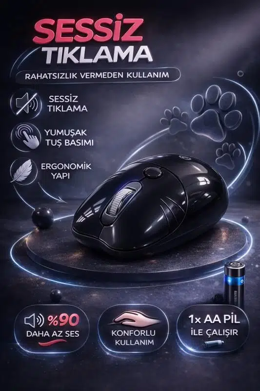 Sessiz Tasarım: Bu ofis faresi, sessiz tasarıma ve kaymaz kaydırma tekerleğine sahiptir ve uzun süreli yorucu işlerde başkalarını rahatsız etmeden işinize konsantre olmanızı sağlar.