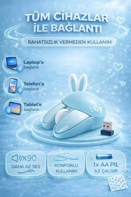 Sevimli Tavşan 3D Mavi Mouse Bluetooth + 2.4G Dual Mode